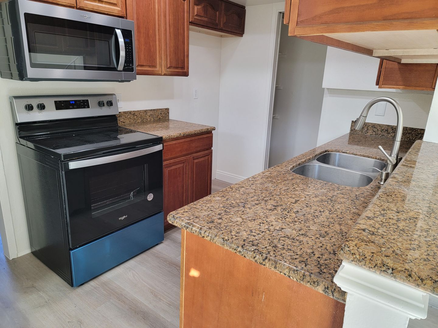 Two story 3 Bedroom townhome. 1 1/2 bath This property is totally remodeled * New Flooring w/new baseboard * New tub, new shower, new vanities, new fixtures, new toilet * New stove, new microwave, new dishwasher * New Closet Doors * 2 Car garage * Rear Yard * New Recessed Lights * Freshly painted *