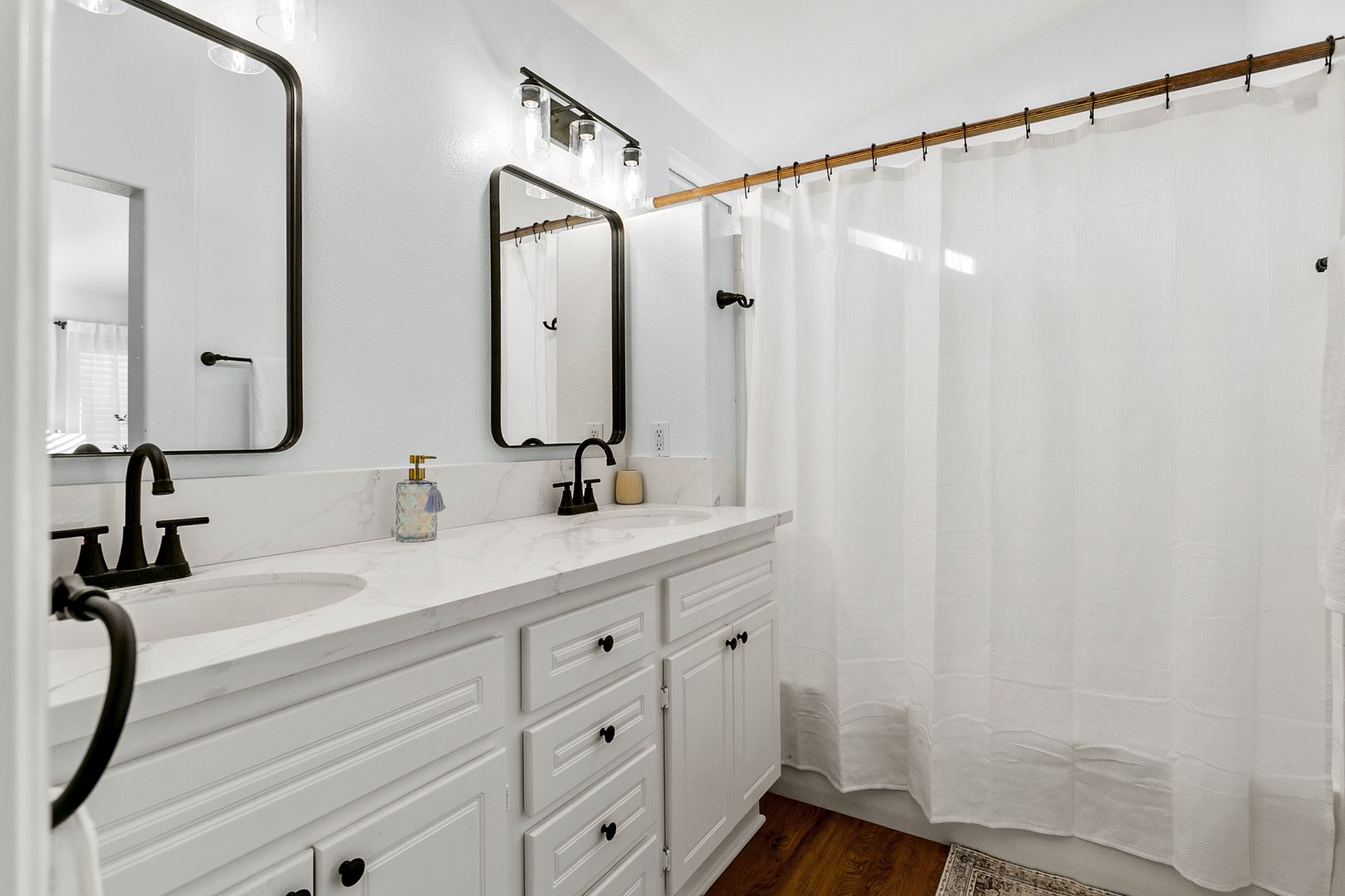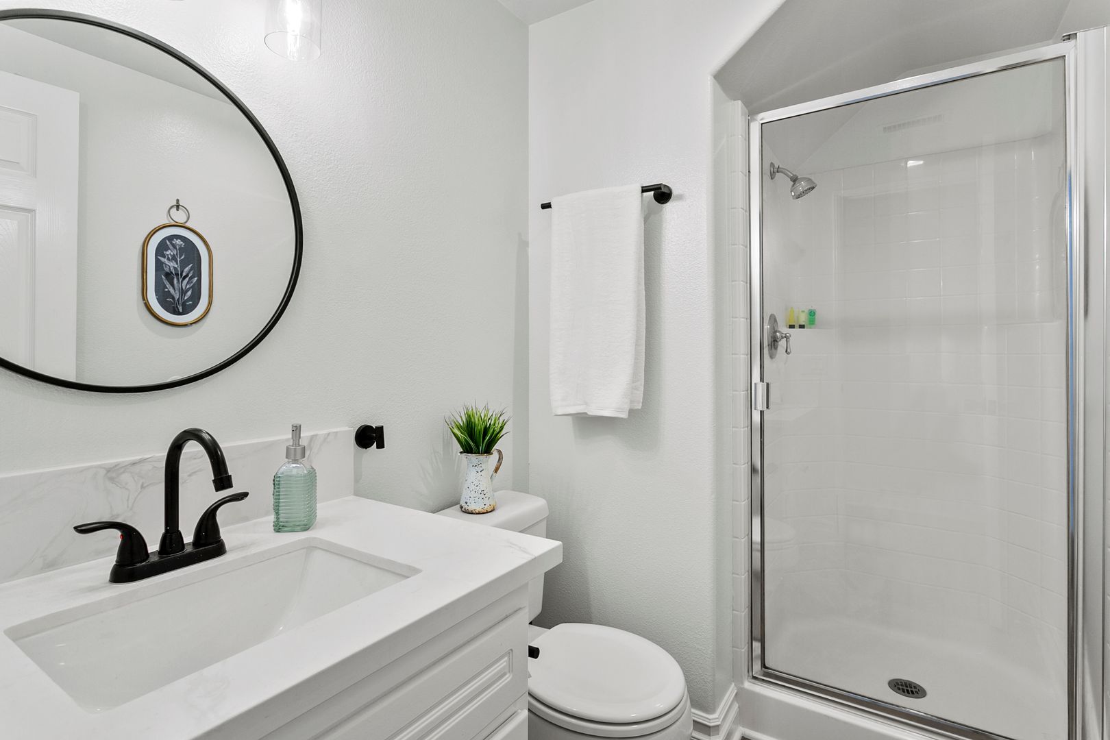 The house features two spacious in-suite bedrooms for ultimate privacy, one bedroom/office upstairs, plus a fourth bedroom downstairs with a full bath. Each room is meticulously designed with high-end finishes, new furnishings, with plenty of natural light creating a serene and welcoming atmosphere. The home boasts a dedicated office space, with high-speed internet, ideal for remote work or quiet reflection.
